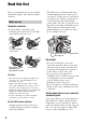Table of Contents Read this first ...........................................................................................2 Identifying parts and controls ...................................................................5 Body...................................................................................................... 5 Wireless Remote Commander ............................................................ 10 Screen indicators ...................................................................