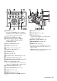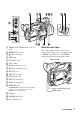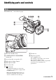 Identifying parts and controls (Continued) A Hook for shoulder strap To attach a shoulder strap B Focus ring (32) Attach a shoulder strap (sold separately) to the hooks for a shoulder strap. C Lens cover lever (21) D Zoom ring (31) E Iris ring (38) F GAIN button (39) G WHT BAL button* (41) H SHUTTER SPEED button (39) I AUTO/MANUAL switch (38) J i (headphones) jack For connecting stereo mini-jack headphones.