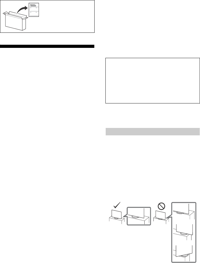 • Install the TV where it cannot be pulled, pushed, or knocked