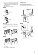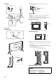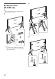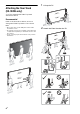 Attaching the Floor Stand (KD-98Z9G only) 1 Lift up the TV. 2 Attach the Floor Stand to the TV. Your TV is shipped with Table-Top Stand attached to the TV. Recommended Refer to the instructions below on how to change the Table-Top Stand to Floor Stand. Note • Do not put stress on the LCD panel or the frame around the screen. • Be careful to not pinch your hands or the AC power cord (mains lead) when you install the TV set to the Floor Stand.