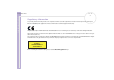 Sony Notebook User Guide Getting help n N 102 The disc tray ejects even when it has been locked into place ❑ Ensure that the disc is placed with the label side facing up. ❑ The disc may be scratched. Place another disc to see if that is the reason. ❑ There may be condensation in the drive. Remove the disc and leave the drive open for approximately one hour. My floppy disk drive cannot write to a diskette ❑ ❑ ❑ The diskette is write-protected.