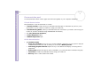 Sony Notebook User Guide Getting help n N 91 ❑ Precautions provides facts and advice about using your notebook. Glossary refers to terms used in this manual. Refer to your Software Guide for information on the bundled software and the Sony applications. ❑ About the Software on your computer is a short description of the features of the software preinstalled on your system. ❑ Using Video software explains how to use Sony video software: DVgate, MovieShaker and Smart Capture.