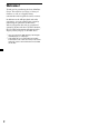 Ytterligare information Säkerhetsföreskrifter •Om du har parkerat bilen i direkt solljus så att temperaturen i bilen har stigit markant, bör du låta MD-spelaren svalna innan du använder den. •Kontrollera anslutningarna först om ingen ström tillförs enheten. Kontrollera säkringen om allt i övrigt är i sin ordning. •Om inget ljud kommer från högtalarna i ett system med 2 högtalare ställer du uttoningskontrollen i mittenläget. •Om bilen har en motorantenn, fälls den automatiskt ut när enheten är påslagen.