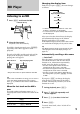 Changing the display item MD Player Each time you press (DSPL), the item changes as follows: $ Track number/ Elapsed playback time Listening to an MD 1 $ Disc name*1 $ Track name*2 Press (OPEN) and insert the MD. Labelled side up 6 2 $ Clock *1 If there is no prerecorded title for a disc “NO D.Name” will appear on the display. *2 If a track title is not prerecorded, “NO T.Name” will be displayed. Close the front panel. Playback starts automatically.