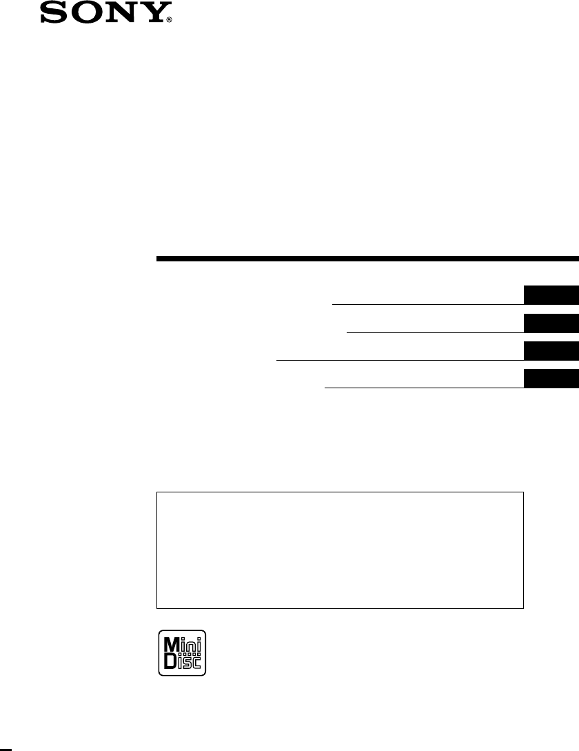 FM/MW/LW MiniDisc Player Operating Instructions GB Manual de instrucciones ES Bruksanvisning SE Manual de instruções PT For installation and connections, see the supplied installation/connections manual. Para obtener información sobre la instalación y las conexiones, consulte el manual de instalación/conexiones suministrado. Vi hänvisar till det medföljande häftet angående montering/anslutningar. Para a instalação e as ligações, consulte o manual de instalação/ligações fornecido.