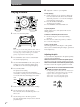 Préparatifs 7 Assemblage de la platine tourne-disque 4 Insérez les charnières sur le couvercle dans les gonds à l'arrière de la platine. 7 2 5 1 3 6 1 Raccordement de la platine tourne-disque Si votre platine présente un sélecteur de tension, veillez à le régler sur la tension locale. 2 Posez avec précaution le plateau sur l'axe. 3 A l'aide du ruban, faites passer la courroie derrière la poulie de moteur. Quand la courroie est en place, n'oubliez pas de retirer le ruban.