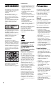 Nombre maximum de titres enregistrables Disque Nombre de titres* DVD-RW/DVD-R (RDR-GX220 seulement) 99 DVD+RW/DVD+R 49 DVD+R DL 49 Remarque sur les DualDiscs * La durée maximale d’un titre est de huit heures. Remarque sur les opérations de lecture des DVD vidéo/CD vidéo Certaines opérations de lecture des DVD vidéo/CD vidéo peuvent avoir été intentionnellement réglées par les fabricants de logiciels. Cet enregistreur lit les DVD vidéo/CD vidéo d’après leur contenu tel que conçu par leur fabricant.