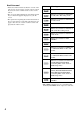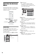 Format DVD-RW (DVD-RWs only) Set Top Box Control Selects the recording format for an unused DVDRW, when first inserted. You can control your cable box/satellite receiver using the supplied set top box controller. See “Step 7: Easy Setup” for details. Press ENTER, and select “On” or “Off.” VR Automatically formats the disc in VR mode. Video Automatically formats the disc in Video mode. On Turns on the cable box/satellite receiver control function.