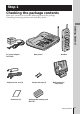 Preparativos En primer lugar, lea esto Antes de utilizar su teléfono, tendrá que instalarlo. A continuación se indica una forma de instalar rápidamente su teléfono: Pasos 1, 2, y 3. Paso 1 (página 7) En primer lugar, desembale el teléfono y los accesorios suministrados. Paso 2 Teléfono base (página 8 a 10) A continuación, tendrá que realizar tres cosas para instalar el teléfono base, incluyendo la elección del lugar adecuado para el mismo.