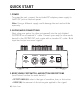 QUICK START 1. POWER To power the unit, connect the included DC adapter power supply to the 9V DC jack on the back panel. Note: Using a different supply could damage the unit and void the warranty. 2. GUITAR/AUDIO CONNECTIONS Next, plug your guitar (or other instrument) into the jack labeled GUITAR IN via a standard ¼" cable. Connect your amp (or other audio device) to the GUITAR OUT jack, again with a standard ¼" cable. Both input and output are mono signals.