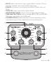 •M IX (C): adjusts the level of clean signal added to the mix. Choose between standard clean tone and EQ’d clean tone. • TONE (D): cuts or boosts the selected TONE SHAPE (TREBLE, MID, and BASS). •O UTPUT (E): adjusts the overall signal volume. •N OISE GATE BUTTON (F): selects the noise gate threshold level. • TONE SHAPE BUTTON (G): selects between BASS, MID, and TREBLE EQ ranges controlled by the TONE knob. • FOOTSWITCHES (H): Enables/Disables a preset depending on the selected footswitch.