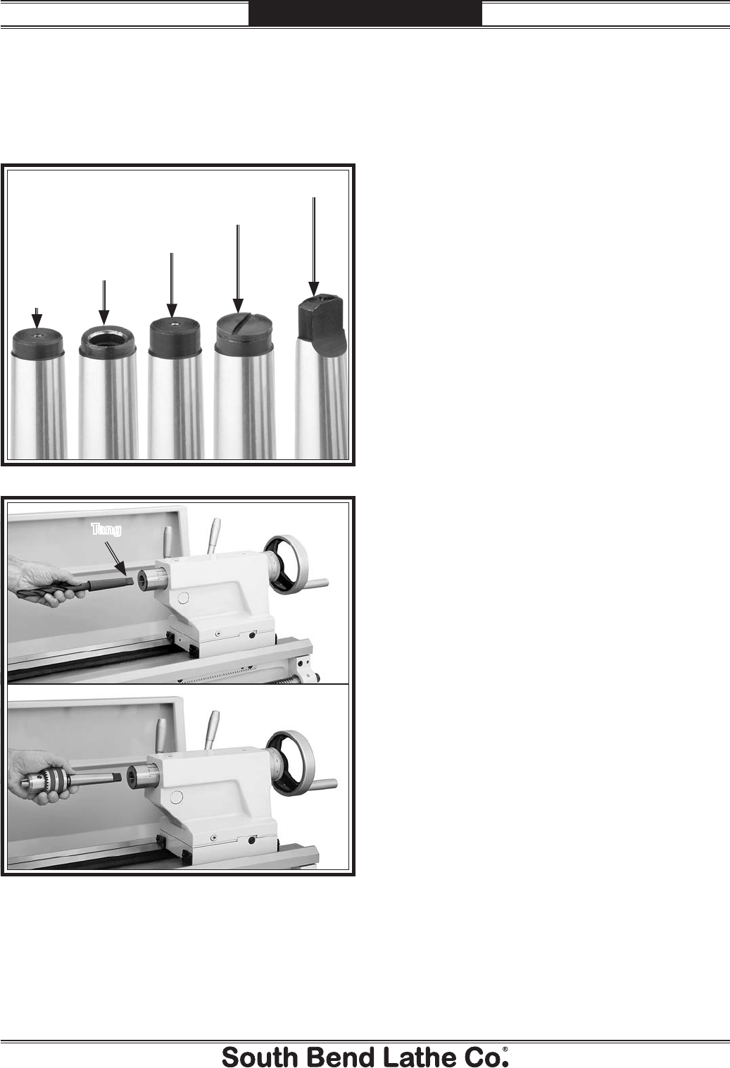 Note: If the tapered tool shaft has a tang, align