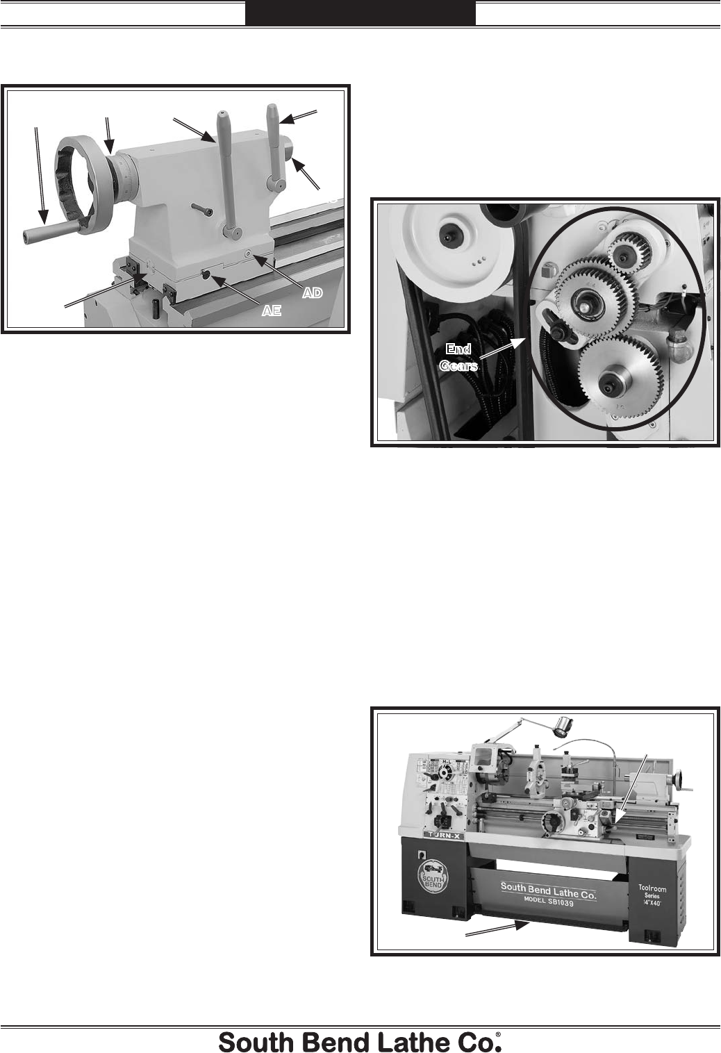 AD. Tailstock Offset Screw: Adjusts the tailstock