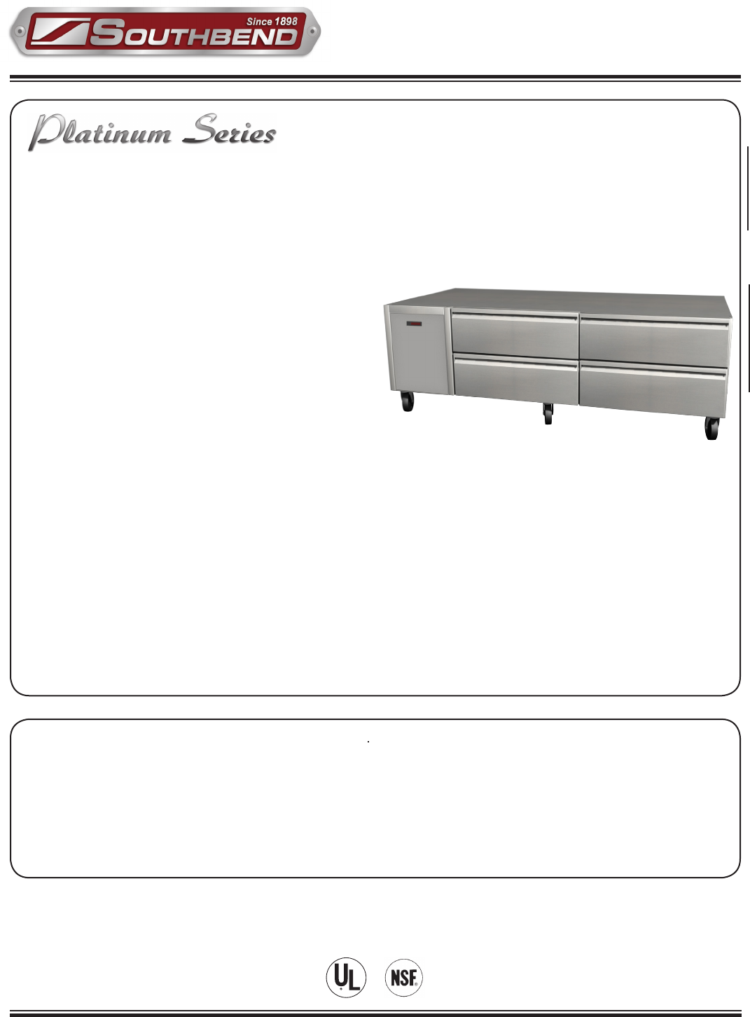 - Drawers hold standard sized (12” x 20” x 4”) pans -pans