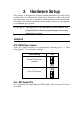 Dual voltage CPUs are designed to use different voltages for Vio and Vc ore. They include P55CX and the Cyrix 6x86L / 6x86MX. Refer to the following figure to set the voltage for these CPUs: 3.2V CPU 2.9V CPU JP32 2.8V CPU JP31 2 4 586 CPU Family 2.1V CPU JP30 4 2 Figure 2-2-3 Dual Voltage CPU Note: Due to varying desings, please ask your dealer for the correct voltage settings for your specific CPU.
