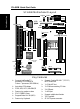 SY-6IEB Quick Start Guide SY-6IEB Motherboard Layout Introduction COM 2 COM 1 1 ITE8671 I/O Chipset ISA Slot #2 ISA Slot #1 1 JP44 USB KB Connector 1 PS/2 Mouse Connector LPT JP10 1 3 FDC 1 1 ATX Power IR 1 1 1 AT Power CPUFAN 5 Slot 1 for R Pentium II Processor 3 AGP Slot SB-LINK (PC-PCI) Intel 82443 EX PCI Slot #2 PCI Slot #1 PCI Slot #3 1 Intel 82371 EB DIMM 2 _ _ SPEAKER HDD JP53 + LED 1 + Turbo Flash + LED PWRBT 1 _ Reset CHAFAN _ Key Lock BIOS DIMM 1 CMOS Clea