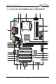 Motherboard Description A B C D E F G H I J K L M N O P Q R S T U V W X Y Z AA AB AC AD AE SY-K7ADA K/B Power-On setting Jumper CPU Vcore adjustment setting switch Socket 462 Connector DIMM Banks CPU Cooling Fan Connector CPU FSB adjustment setting switch Bus Mastering E-IDE/ATAPI Ports ALi M1647 North Bridge chip SYS Cooling Fan CPU Vcore setting Jumper 32-bit AGP 1X/2X/4X Slot Floppy Disk Drive (FDD) Port ALi M1535D+ South Bridge chip 32-bit PCI Mastering Slots Serial Infrared (IrDA) Device Header Chas
