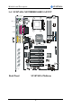 Hardware Installation SY-K7ADA 2-3.3.4 Back Panel Connections All external devices such as the PS/2 keyboard, PS/2 mouse, printer, modem, USB1, USB2 can be plugged directly onto the Motherboard back panel. Only after you have fixed and locked the Motherboard to the computer case can you start connecting the external peripheral devices. When connecting an external device, use the following figure to locate and identify which back panel connector to plug the device to.