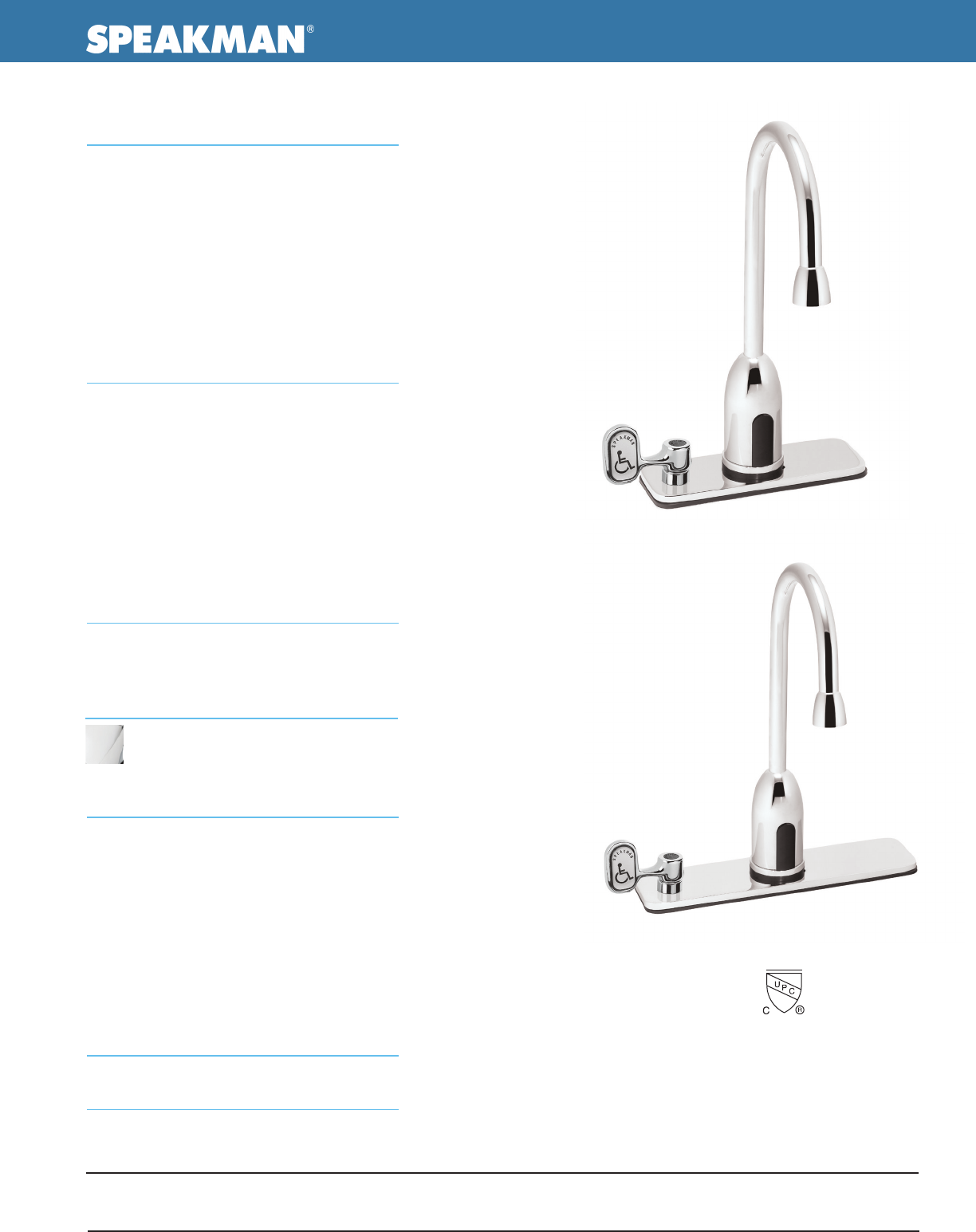 ❑ S-9218-CA-E: Gooseneck faucet, manual override valve with