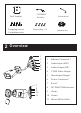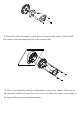 r to ec nn co of ro -p er W at 43 AL AR 21 M 1--ALM-COM 2--ALM-OPEN 3--ALM-INA 4--ALM-GND 12VDC/24VAC * 1 It is recommended to install the water-proof connector for outdoor installations. * 2 DC 12V/AC24V power supply is not required if a PoE switch or injector is used to power the camera. ► Connecting Network Cable 1 2 3 ① Loosen the nut from the main element. ② Run the network cable (without RJ 45 connector) through both elements. Then crimp the cable with RJ 45 connector.