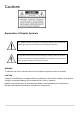 Cautions Explanation of Graphic Symbols This symbol indicates the presence of important operating and maintenance (servicing) instructions in the literature accompanying the product. This symbol indicates the presence of “dangerous voltage” within the product’s enclosure that may be of sufficient magnitude to constitute a risk of electric shock, property damage, personal injury, or death. WARNING To reduce a risk of fire or electric shock, do not expose this product to rain or moisture.