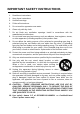 IMPORTANT SAFETY INSTRUCTIONS 1. Read these instructions. 2. Keep these instructions. 3. Heed all warnings. 4. Follow all instructions. 5. Do not use this apparatus near water. 6. Clean only with dry cloth. 7. Do not block any ventilation openings. Install in accordance with the manufacturer’s instructions. 8. Do not install near any heat sources such as radiators, heat registers, stoves, or other apparatus (including amplifiers) that produce heat. 9.