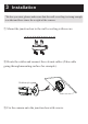 3 Installation * Before you start, please make sure that the wall or ceiling is strong enough to withstand three times the weight of the camera. ① Mount the junction box to the wall or ceiling with screws. ② Route the cables and connect the relevant cables (Take cable going through mounting surface for example). Rubber plug ③ Fix the camera onto the junction box with screws.