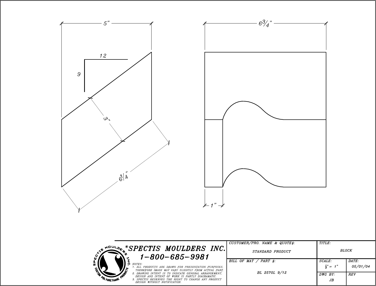 6-3/4" x 3" x 5" Left Pitch Smooth White Polyurethane Block