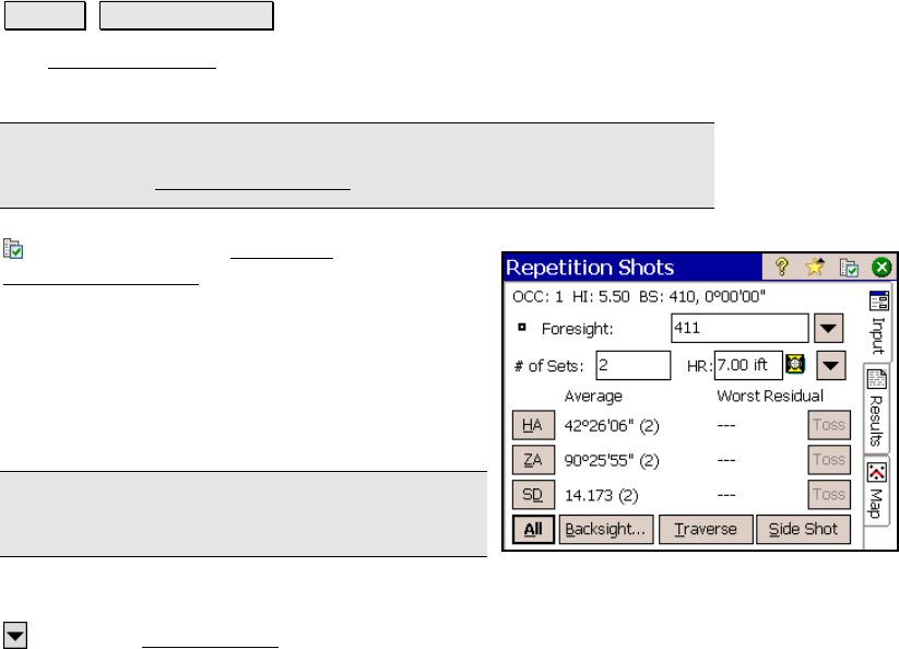 The Repetition Shots screen is used to perform side shots or traverse