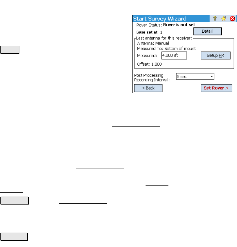 The Rover Setup screen is used to set the RTK rover receiver, and to