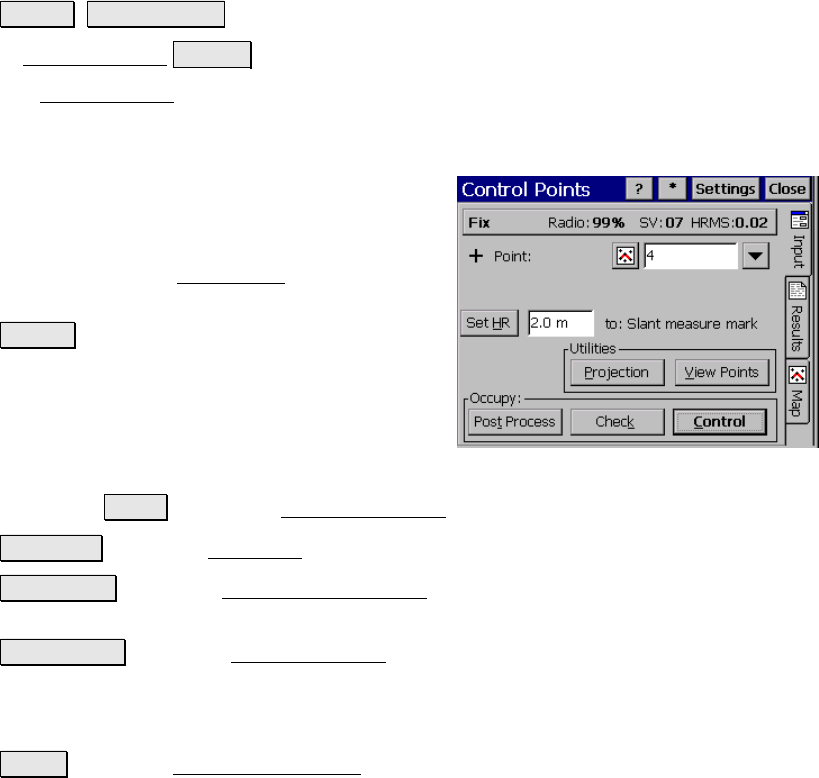 The Control Points screen is used to measure GPS control points to
