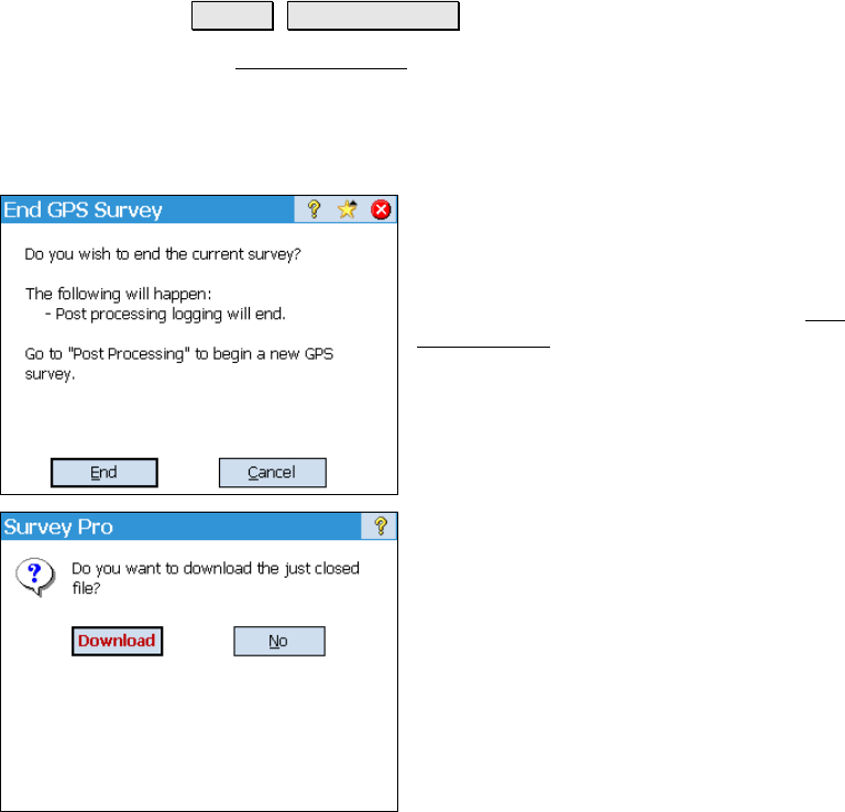 Stop & Go recording session, or stop an RTK survey by hanging up an