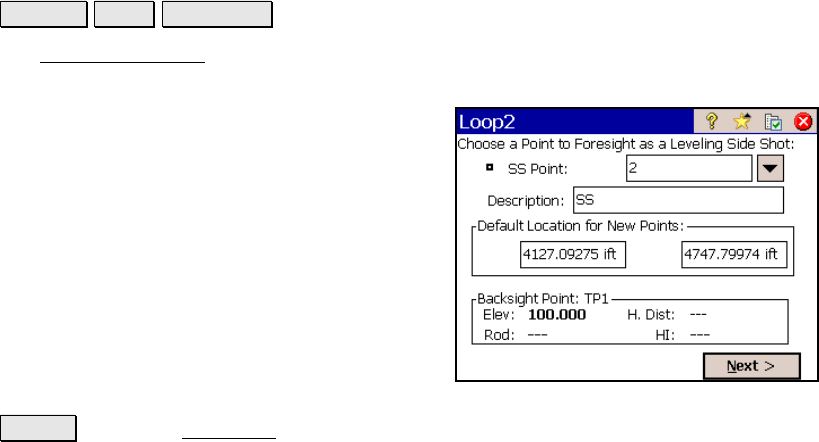 The Leveling Sideshot screen is used to describe a leveling side shot