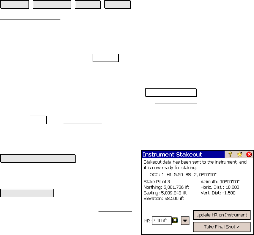 return to the Instrument Stakeout screen, where you can once again