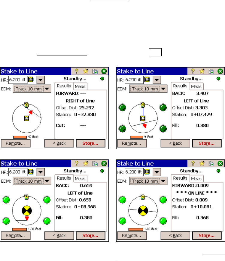The contents of the Stake to Line screen when running in remote