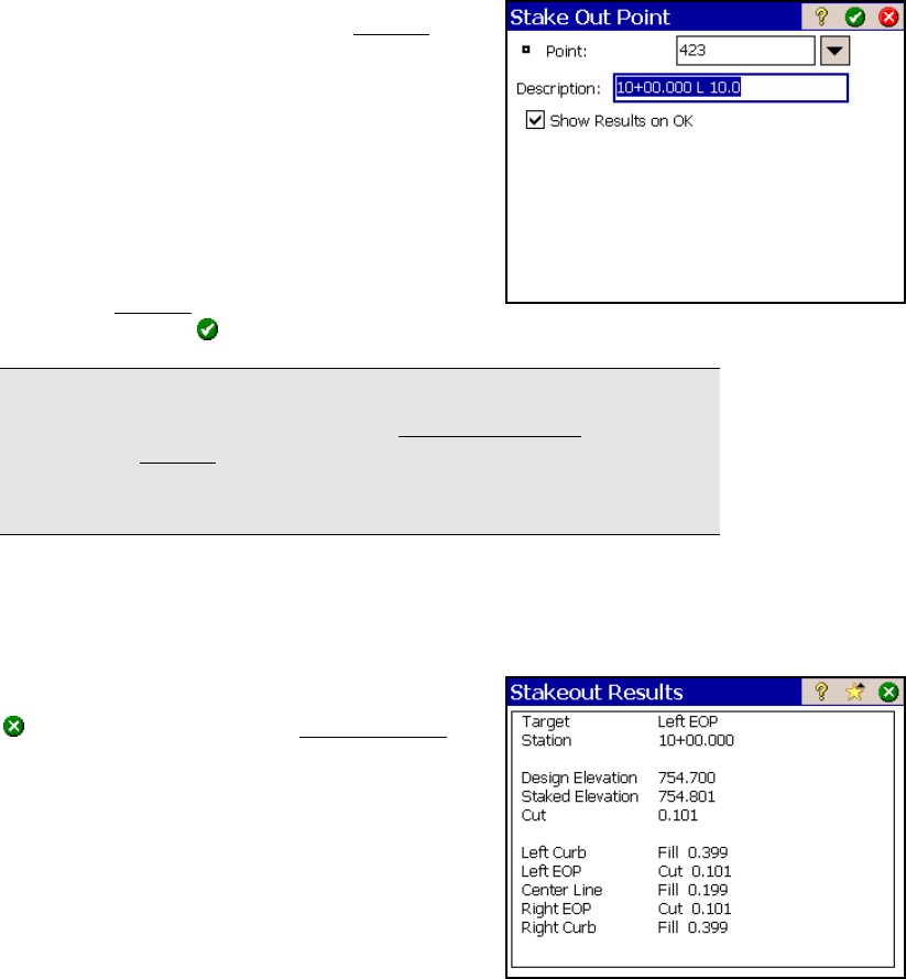 Store Point) checkbox is checked in the Stakeout Settings screen,