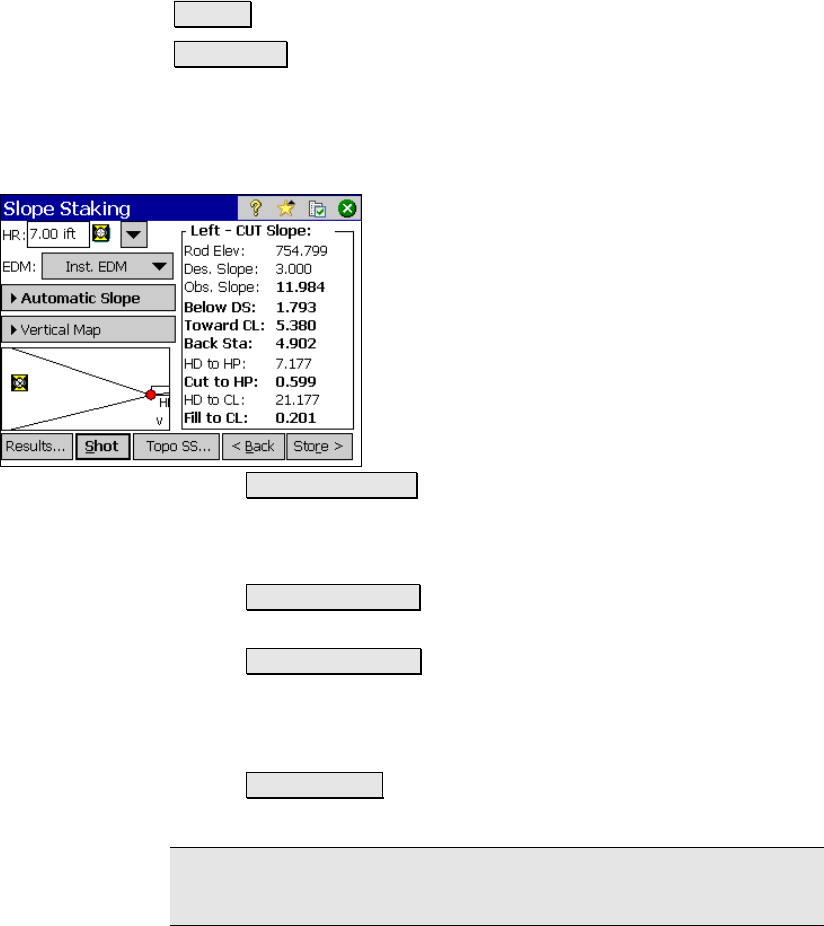 The fourth screen is used to perform the actual slope staking shots.