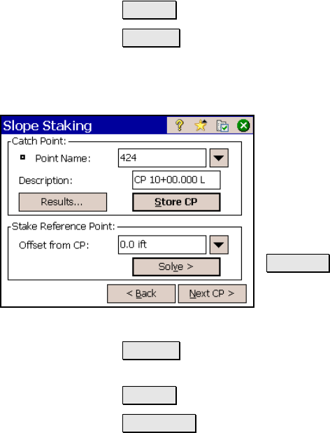 Next CP > : returns to the third slope staking screen where the