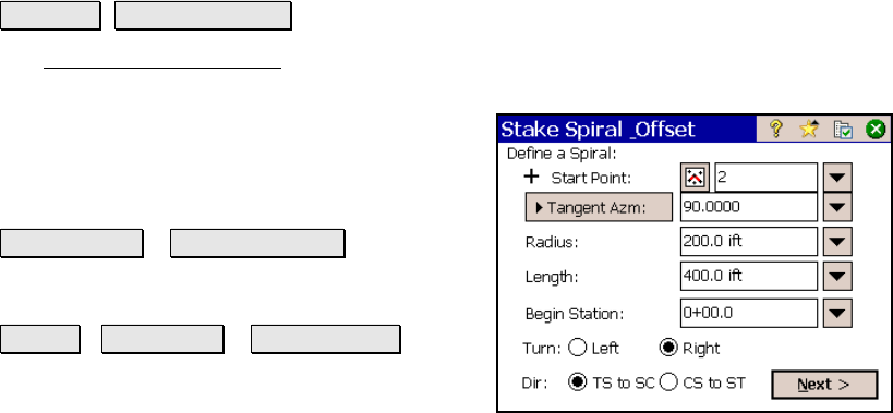 Spiral) and ends at the tangent (Spiral to Tangent).