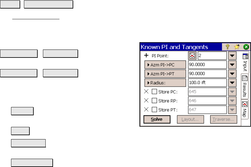 The PI and Tangents screen is used to compute and store the PC, PT,