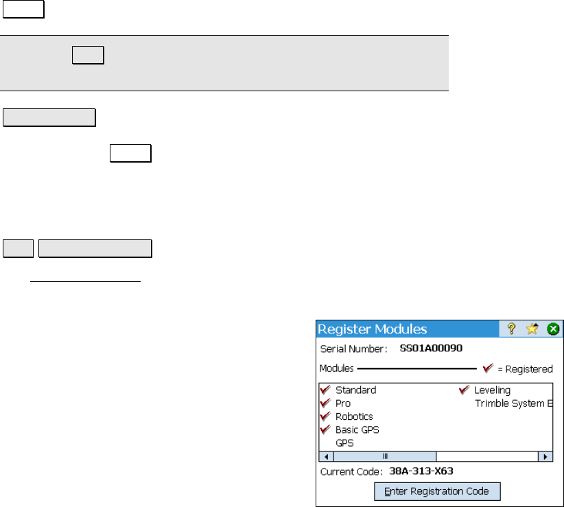 The Register Modules screen is used to upgrade the Survey Pro