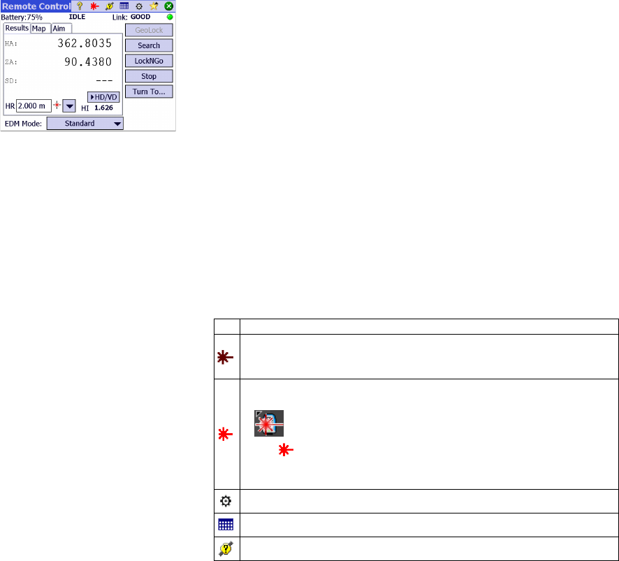 • The operating status of the total station (IDLE/ MEASURING/Locked)