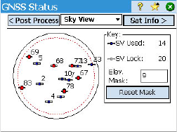 • Sat Info: Shows the L1 signal strength (SNR) of each satellite in tabular and
