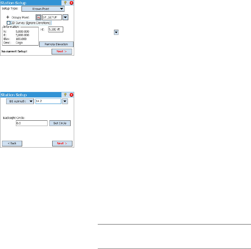 • Go to the Main Menu, then tap Survey > Station Setup.