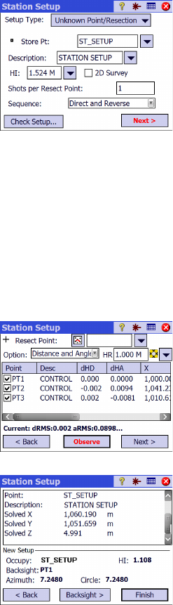 • Go to the Main Menu, then tap Survey > Station Setup.