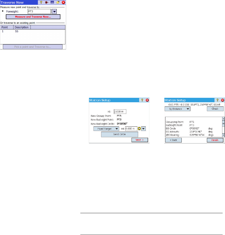 •Tap Traverse. The screen prompts you to measure a new point, or to pick a