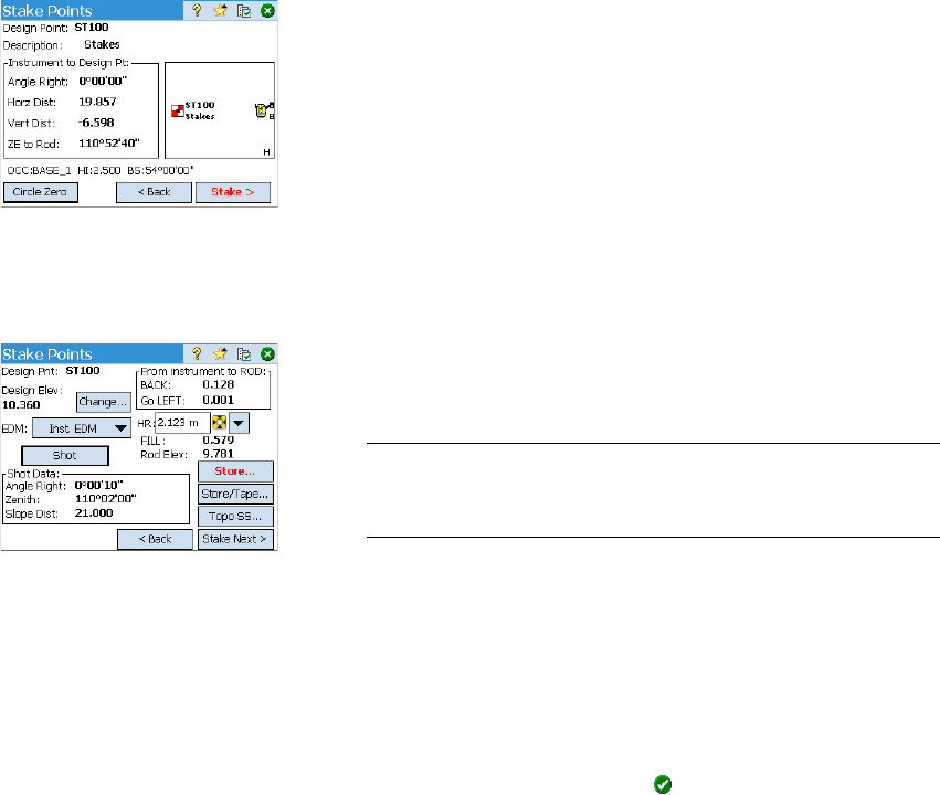 •Tap Stake then Shot to take a measurement. The screen returns the results