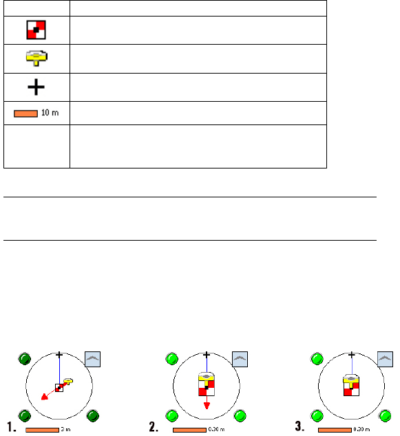 2. Distance to go is less than 0.3 m (1 ft): The spots around the graphic