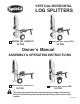 VERTICAL/HORIZONTAL LOG SPLITTERS MODEL NO. LS401221 22 TON MODEL NO. LS401216 25 TON Owner’s Manual ASSEMBLY & OPERATING INSTRUCTIONS MODEL NO. LS401213 28 TON MODEL NO. LS401224 34 TON This safety alert symbol identifies important safety messages in this manual. Failure to follow this important safety information may result in serious injury or death.