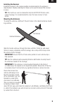 EN Installing the Receiver Install the receiver in the normal position recommended by the airplane’s manufacturer. Double-sided tape or foam can be used to secure the receiver in place. TIP: The hard case can be removed to help the AR10100T fit into a slim, carbon fuselage. It is recommended to cover the bare receiver in heat shrink. Mounting the Antennas To install the antennas, drill two 1/16-inch holes in the desired antenna mounting positions.